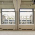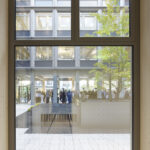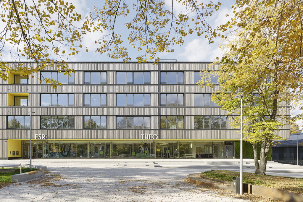 Die neue, vierzügige Schule bietet Raum für 750 Schüler*innen und reiht sich dabei an die Bestandsbauten auf dem Schulgelände an. Gleichzeitig bleibt die städtische Frischluftschneise erhalten – ein zentraler Aspekt der städtebaulichen Setzung.